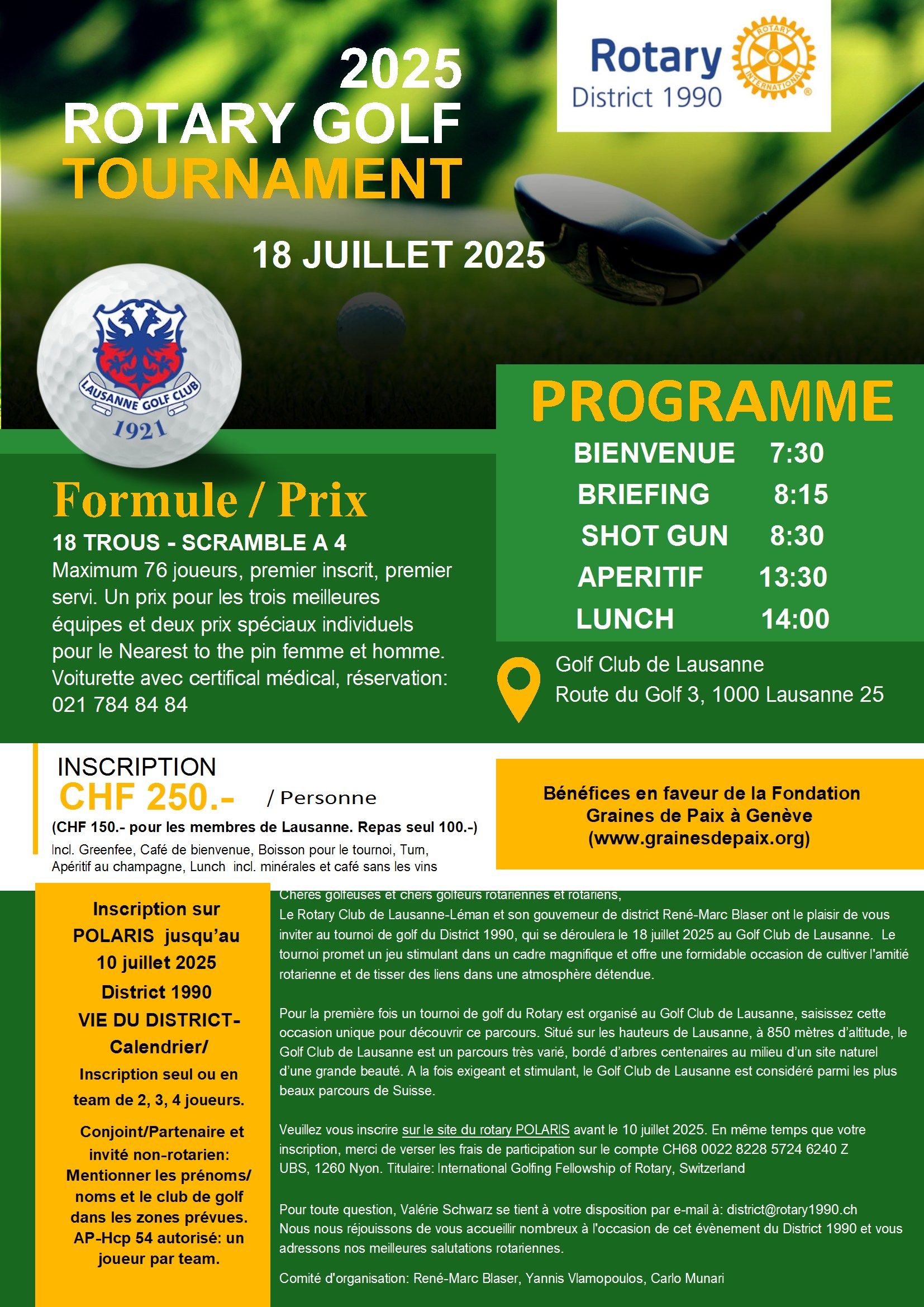 vendredi 18 juillet 2025 07:30-14:00, Golf Club de Lausanne, Route du Golf 3, 1000 Lausanne 25